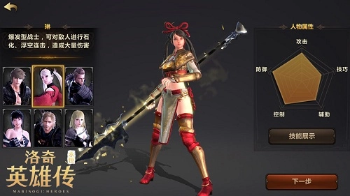 在《洛奇英雄传》里,身为高傲楼兰公主的琳,始终背负着复国的伤痛,虽为女儿身却有着勇往直前的战斗气魄。按照游戏设定,琳擅长使用枪戟类武器,武器会随着等级提升而变化;在相关内容中,琳的武器依旧以长兵器为主,延续了长兵器大开大阖的特点,技能方面既保留了长枪突刺的核心,又融入了长刀横扫、挥劈的特性。她的主要技能包括破军、穿云、风精祝福和百花乱舞。