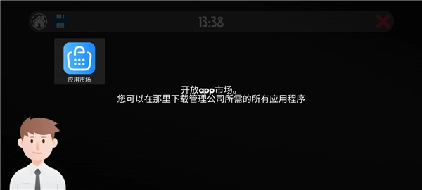 游戏安装完成后,我们进入游戏界面,点击右下角的对应按键就能打开电脑,开启你的公司管理之旅。