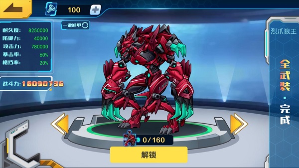 准确地说,机甲斗兽场中的狼王名为烈爪狼王,它是新版本更新后推出的全新机甲。玩家可在机甲仓库的整备界面查看烈爪狼王的具体属性,其初始战力约为1800万,而且它的耐久度、防御力、攻击力和暴击率,都远超此前玩家所能达到的数值水平。