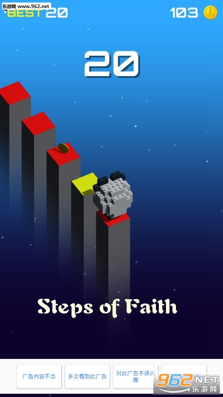 《Steps of Faith安卓版》是一款休闲点击跳跃闯关游戏,玩家需要操控角色在平台间跳跃,过程中要及时更换颜色——只有与平台颜色对应的角色才能成功跳上;同时动作不能拖沓,因为身后的平台会逐渐坍塌,一旦行动过慢就会坠落。