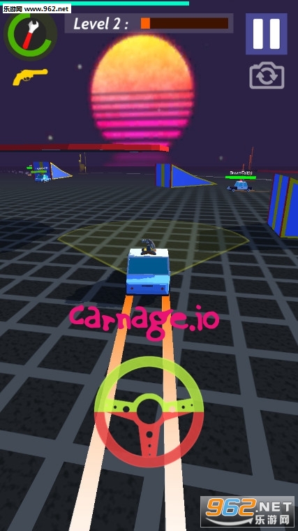 《Carnage.io》是一款十分有趣的赛车io竞技游戏,挑选你的赛车加入这个绚丽的舞台吧,操控好方向盘,避免发生碰撞,你能够收集地图里的枪支和工具,提升自身火力,瞄准其他车辆进行射击,把它们全部摧毁。