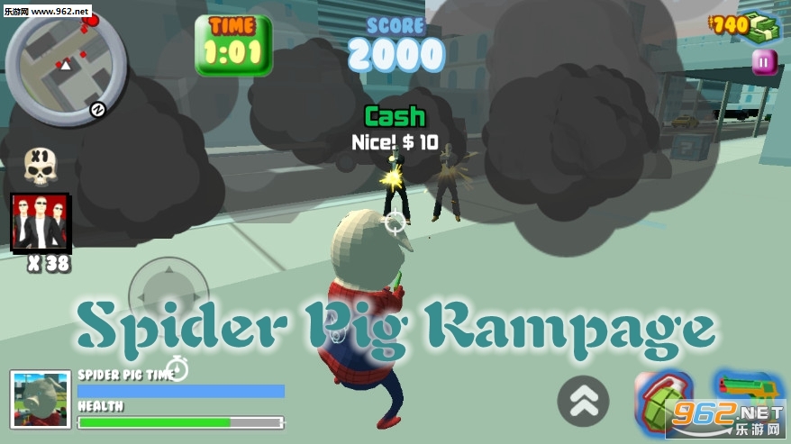 《Spider Pig Rampage游戏》是一款趣味十足的城市冒险战斗游戏,玩家在游戏里将化身为一只具备战斗能力的小猪,需凭借出色的能力完成各类挑战。你可以拿起手中的火箭炮在城市中展开战斗,既能够成为守护这座城市的英雄,也可以化身破坏城市的存在,不同的选择将为你带来截然不同的游戏体验。