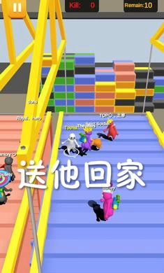 《送他回家》是一款十分有趣的对战类休闲游戏,它的画面简洁大方,操作方式也很容易上手。在游戏里,玩家可以解锁不少充满趣味性的搞怪皮肤,还能收集各类实用的道具,借助这些道具进行战斗并努力生存下去。感兴趣的玩家们赶紧来体验吧!