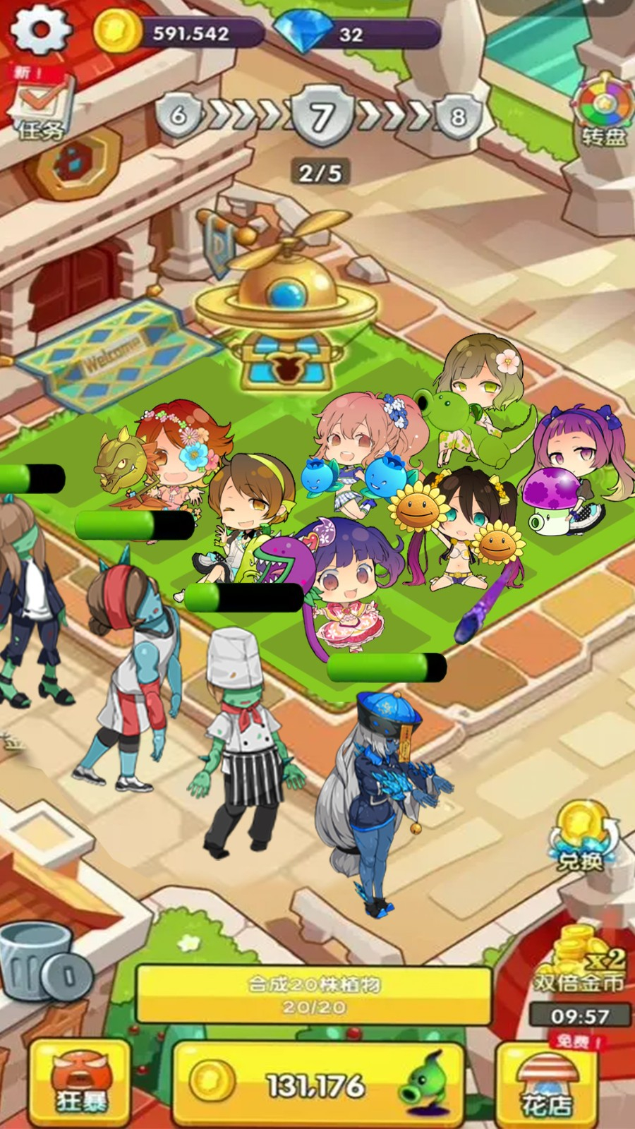 植物养成:用碎片升级植物属性,解锁进阶技能,杂交合成新植物,更换皮肤提升战力与外观表现。