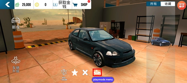 进入游戏大厅后,第一步先点击车库,进入车库改装界面。