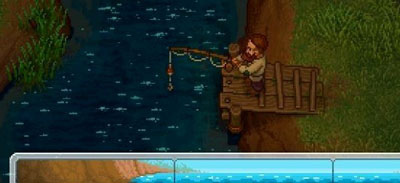 4、诱饵鱼堪称鱼界的“战五渣”,是最不起眼的鱼种,但作为钓饵却意外好用。用二级鱼竿不挂饵的情况下,在瀑布或小镇水域都能钓到,而且是100%的成功率。选择二级杆主要是因为它消耗的体力更少,要是还没买二级杆,用一级杆也能钓上来。