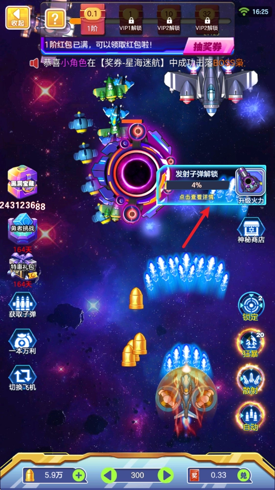 击毁敌机可获取积分,当积分达到特定数值时,就能得到转盘奖励,从中随机获得奖券。