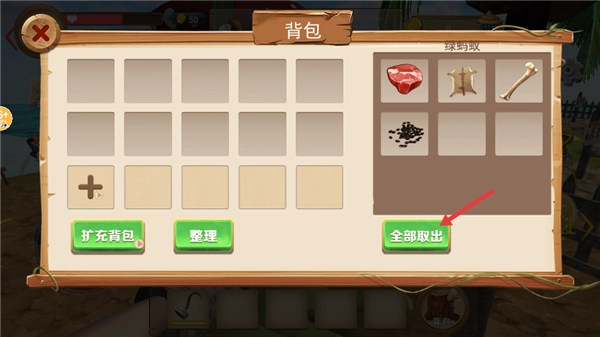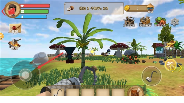 2、升级并建造木筏,操控方向前往不同海域的岛屿进行探索,收集丰富的物资。