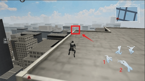 3、当界面上出现圆点标识时,点击数字键1或2,再配合移动键操作,就能借助绳索在高楼大厦之间穿梭飞行了。