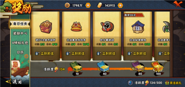 3.日常趋于减负,基本日常十分钟就能完成,每周总活跃到达500,送密卷等火影忍者材料