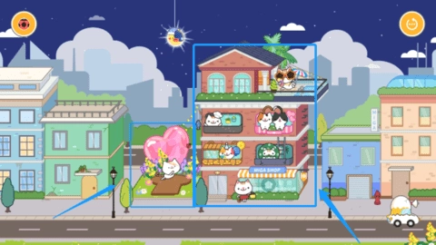 简单的玩法操作,小孩子只需要简单点点就可以完成各种布置
