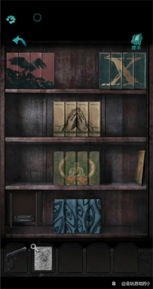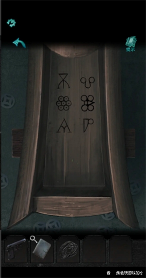 从桌上拿到《符纸》,把它贴在墙上的眼睛位置,就能获得《钳子》;接着用钳子打开笔记本。之后按照桌上贡品的高低顺序来开启石门,顺序是蜡烛(第四)、人(第三)、苹果(第二)、金锭(第一)。