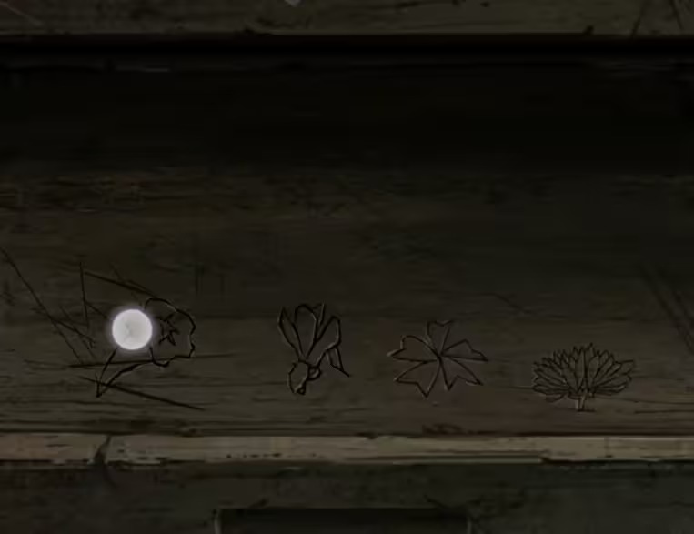 同时,留意抽屉内部的四个图案,它们和窗外的花朵是对应的,分别是5朵喇叭花、7朵玉兰花、4朵山茶花、9朵菊花。不用手动去数,只要点击花朵,数量就会自动显示出来,特别适合懒人玩家。