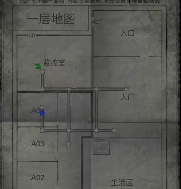 这时,窗户上会浮现出人影,点击查看就能进入剧情。剧情结束后,我们会得到一张地图,同时要记清楚前往监控室的路线是左左左右,其他区域目前还不能去。