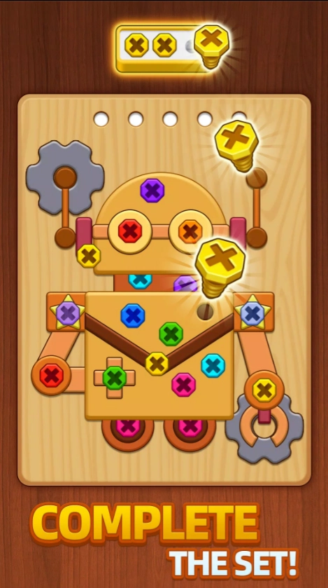 包含数十个精心设计的关卡,随着进度推进,螺丝颜色和排列复杂度提升,必要时可以使用道具来帮助解谜。