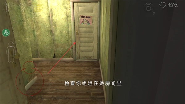 1、按照提示查看你姐姐是否在她的房间里,然后操控角色移动到指定的目标区域。