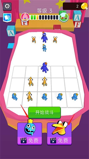 打开彩虹朋友合并怪物正版游戏后,先把你的彩虹朋友布置妥当,再点击开始战斗。