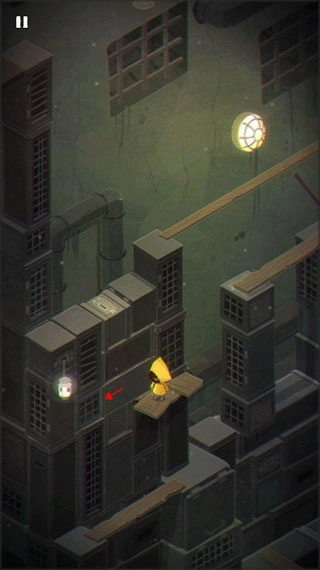 经过这里时留意这块板子,当它快要坠落时,赶紧点击屏幕让摩诺转移到安全的地方。