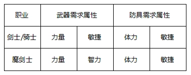 【剑士装备属性需求表】