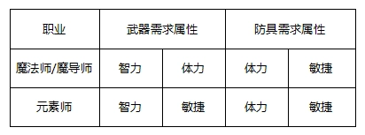 【法师装备属性需求表】