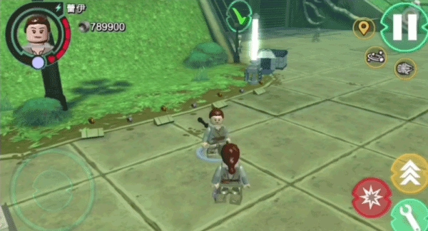 接着降落到地面,把秘密基地前的乐高砖块搭建起来,拼成一台换装机器。要注意观察大门通行屏幕上敌方士兵的头盔样式,选一个相似的头盔戴上后,走到大门荧屏前接受检查。这样对方就会把汉·索罗他们当成自己人,打开大门迎接。如此一来,汉·索罗一行人还有伊沃克族人就顺利攻占了这个秘密基地。