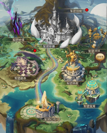 军团由军团红包、军团宝库、军团副本、军团捐献、军团秘境、军团联赛、军团活跃、军团技能这8个板块的玩法共同组成。
