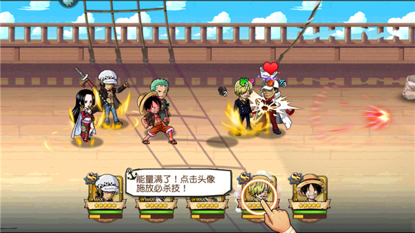 在航海王启航游戏中通过收集培养原著中魅力十足的的各个角色,组建只属于自己的个性海盗团新势力,驰骋大海,走向成为海贼王的荣耀之路。
