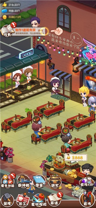 这款游戏融合了美食题材与冒险闯关玩法,不仅包含丰富的经营类内容,你还将化身为一名冒险者,前往世界各地展开冒险,收集各式各样的美味食材与配方。你的目标是掌握更多烹饪技巧,最终成为当之无愧的厨神。