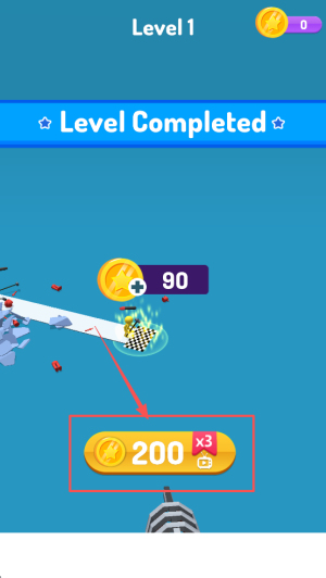 4、完成关卡:当界面显示“Level Completed”时,领取三倍奖励。