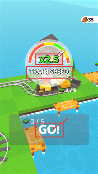 1、当观察到【x2.5】-【TRAIN-SPEED】的增益效果时,点击【GO!】启动列车,能够更高效地推进关卡进度。
