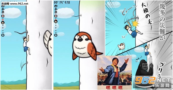 好在女主一看就是个十分执着的女孩,她再一次爬上心爱的萝卜。这一次又有了新发现,原来游戏里除了女主以外,还能看到别的生物。比如面无表情飞过的小鸟,还有不知道为什么也爬上了萝卜的大猩猩?!哎你别追我啊,就算你追到我,我也不和你嘿嘿嘿啊!