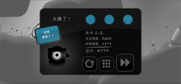 当角色进入那个较大的光点时就能完成关卡,通关之后你可以点击“下一关”继续游玩。