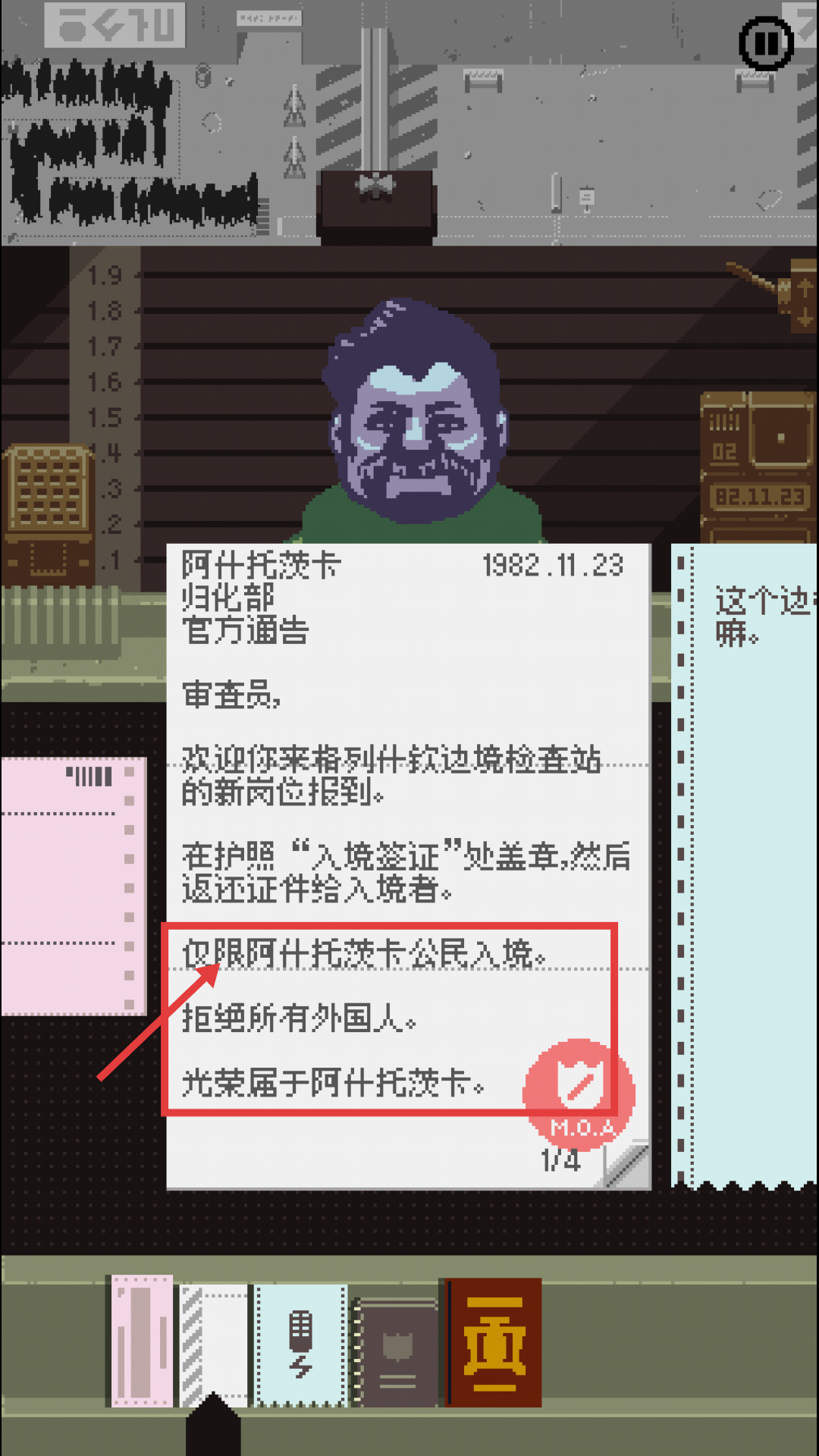 1、点击【新游戏】开始游戏,进入格列什钦边境检查站新岗位,开启审查员的工作流程。
