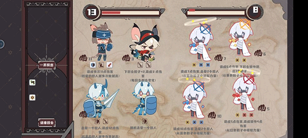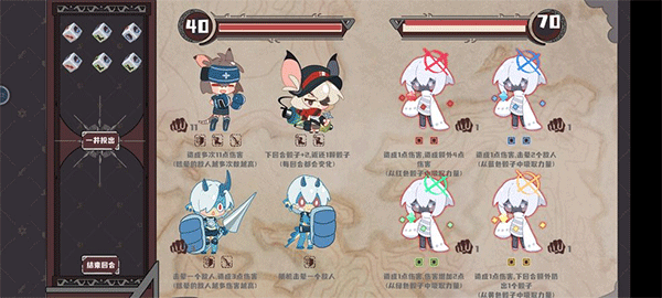 红骑作为大型输出角色,输出能力极强,不过技能启动条件颇为严苛——要求所有骰子均为红色。玩法核心在于,在尽可能确保骰子带有红面的前提下,彻底清除掉己方完全用不上的角色元素,否则红骑将完全无法启动。前中期阶段主要对骰子进行调整,到了后期阵容稳定后,就能实现快速收割。这里建议开局就换掉牧师,把所有黄面骰子都删除,原因是牧师的技能会直接随机化所有剩余骰子,这与红骑的技能存在根本性冲突。当然,也可以考虑携带先知,只要能随机出全红骰子就能直接稳杀对手,但这属于“红骑赌狗流”的范畴,不在本次的讨论范围内。