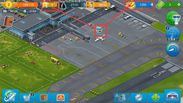 3、点击带有金币图标的区域,收集【1295】金币,与此同时留意星级进度,积攒资金以支持机场的发展。