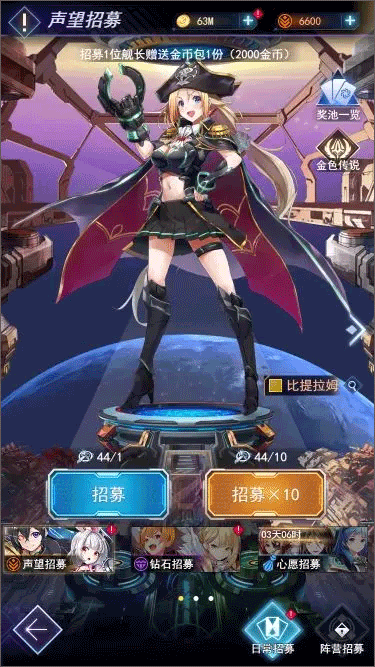 玩家能够在「诺亚之翼」获取新的星舰,获取方式包含声望招募、钻石招募与阵营招募这三种类型。