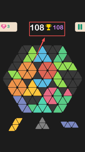 2、观察方块布局:查看待拼方块形状与六边形场景空位,规划方块摆放位置,避免盲目操作导致失误。