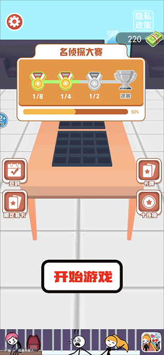 玩家们能在这款游戏里通过问答持续猜测对方手中的卡片角色,同时还有不少相关互动内容,让你体验到格外欢乐的娱乐形式,为玩家带来更多乐趣。游戏内包含多种实用道具,玩家可在此享受趣味十足的玩法操作,这需要你具备足够的耐心与毅力,去尝试更多趣味比拼,找到自己想要的游戏物品。