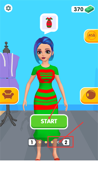1、点击【START】按钮,启动第【2】阶段的服装改造任务,按照上方的服装图标进行设计。