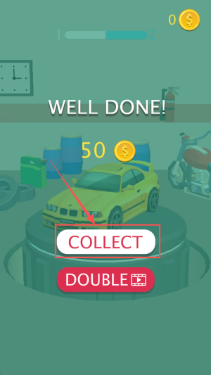 2、领取奖励:在结算界面中,点击COLLECT按钮,直接获得50奖励并进入下一关。