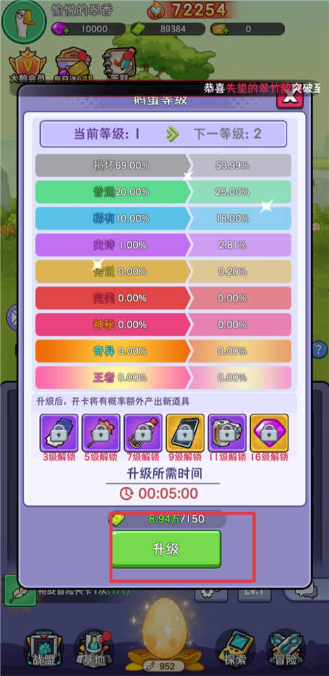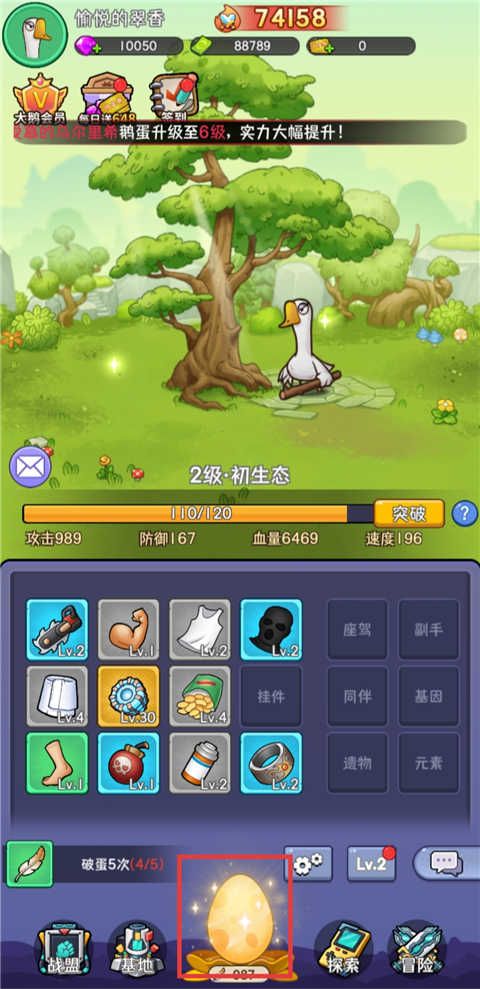 6、玩家需要提升鹅蛋等级,可以提升开到稀有装备概率。