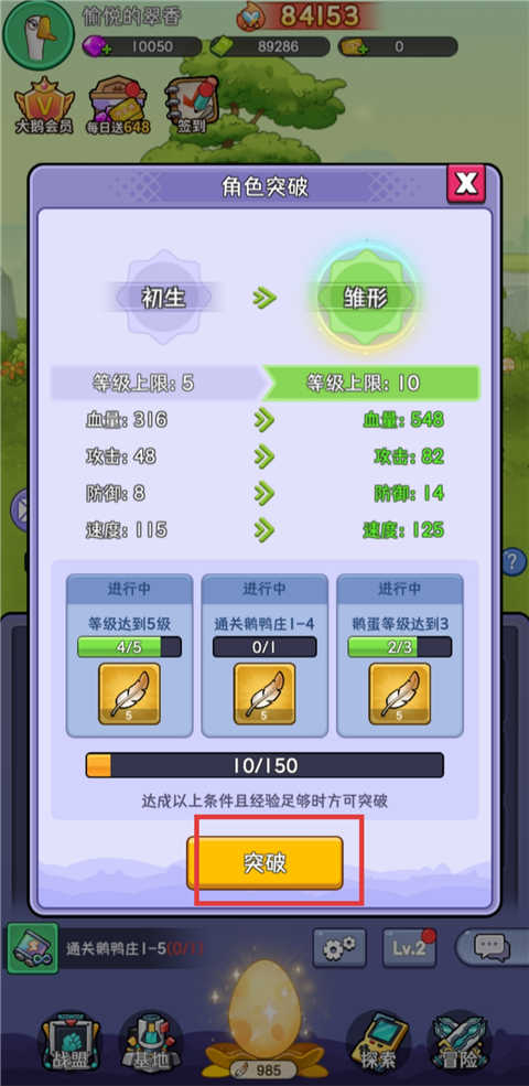 7、达到相关条件后,玩家可以继续角色突破,拥有更强的血量、攻击等属性。