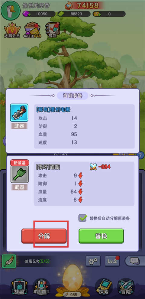 4、刷出低阶装备,点击【分解】,回收为纸钞。
