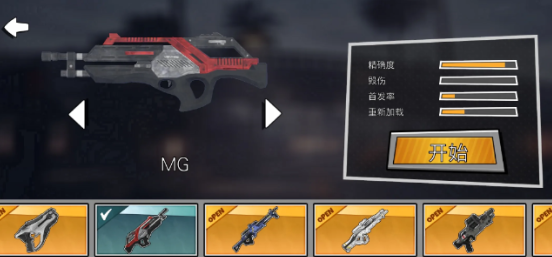 2、进入武器栏,挑选喜欢的武器加入地图之后开启游戏