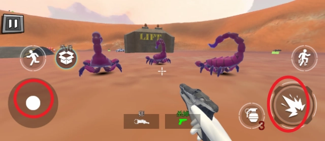 3、左侧移动跳跃,右侧则是瞄准射击,操控角色在地图上射击怪物