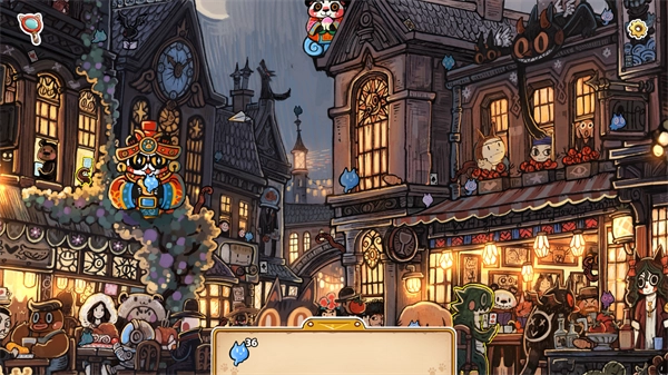 采用动态厚涂技术,结合浓郁绚丽的色彩与细腻光影,呈现樱花纷飞的猫镇、齿轮运转的钟楼等鲜明场景。角色与场景均采用逐帧动画,星空流转、巨鲸游跃等动态效果精致如绘。搭配随季节变化的环境音效,构筑出宛如“可互动绘本”的沉浸世界。
