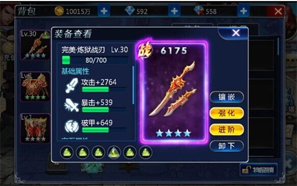 在游龙英雄里,提升战力最核心的途径是装备强化与进阶。强化装备时,所需材料包括一级、二级、三级强化石这几种不同等级的强化石,除此之外,那些用不上的多余装备也能当作强化材料来使用。