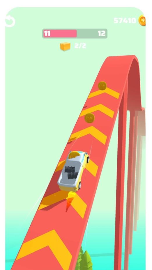 2、在迷你货车大闯关游戏中,你可以选择在前方道路转弯,也能够直接冲刺前行。