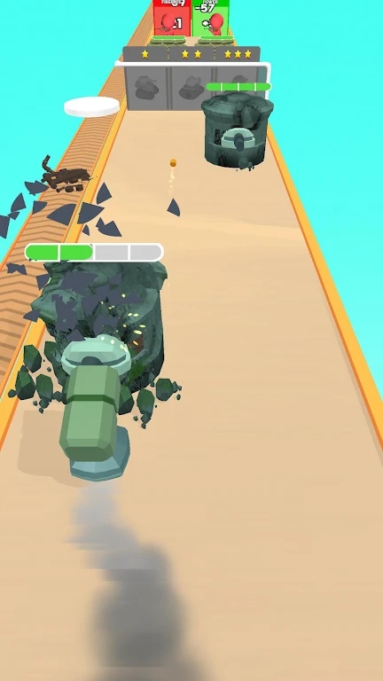 1、刺激的玩法:在游戏里,玩家能够体验到惊险刺激的游玩方式,还可以操控坦克对前方的障碍物进行轰炸。