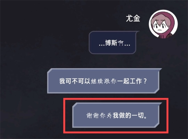 如果你想还我人情,那到了目的地就得听我的√(必选项,若选择第二个选项,无论后续如何选择,都会触发“博斯”杀死“尤金”的第五结局,之后“尤金”重生。)